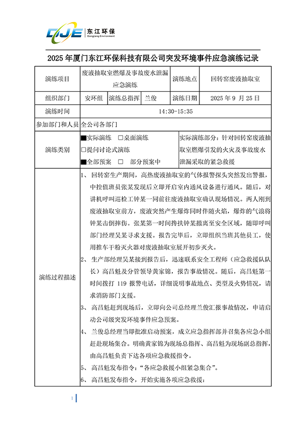 2025年廈門東江環(huán)?萍加邢薰就话l(fā)環(huán)境事件應(yīng)急演練