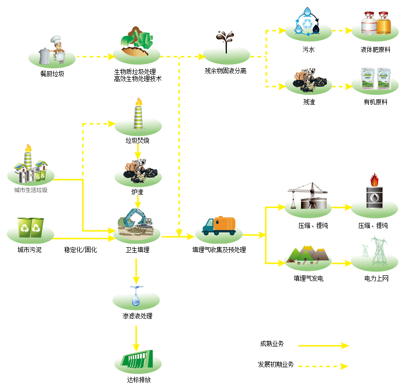 東江環(huán)保所從事的市政廢物處理業(yè)務包括市政廢物的處理處置和再生能源利用,主要是對城市生活垃圾進行清運和衛(wèi)生填埋以及生活垃圾填埋滲濾液進行處理達標排放;利用生活垃圾填埋場所產生的填埋氣進行發(fā)電。此外,填埋氣發(fā)電項目和公司聯(lián)合投資的煤礦乏風減排項目可減少溫室氣體的排放,符合《京都議定書》規(guī)定的清潔發(fā)展機制,項目經(jīng)聯(lián)合國CDM執(zhí)行理事會批準后,二氧化碳核準減排量可在國際市場交易。